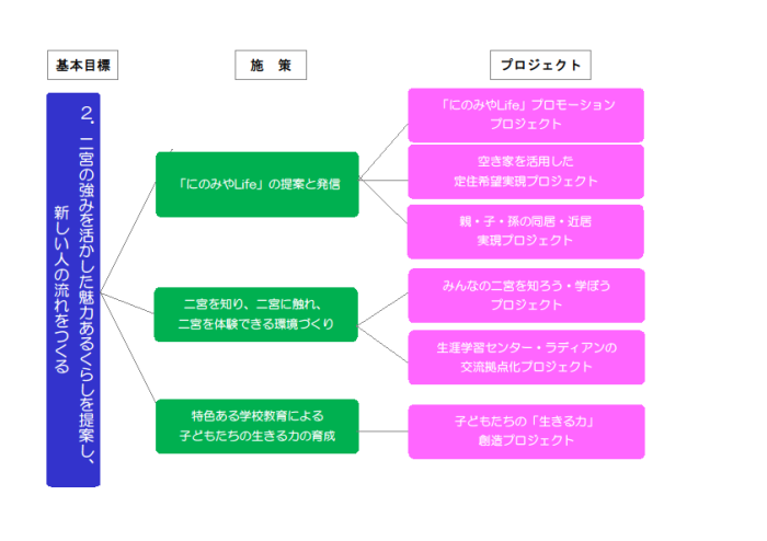 - 基本目標2:二宮の強みを活かした魅力あるくらしを提案し、新しい人の流れをつくる