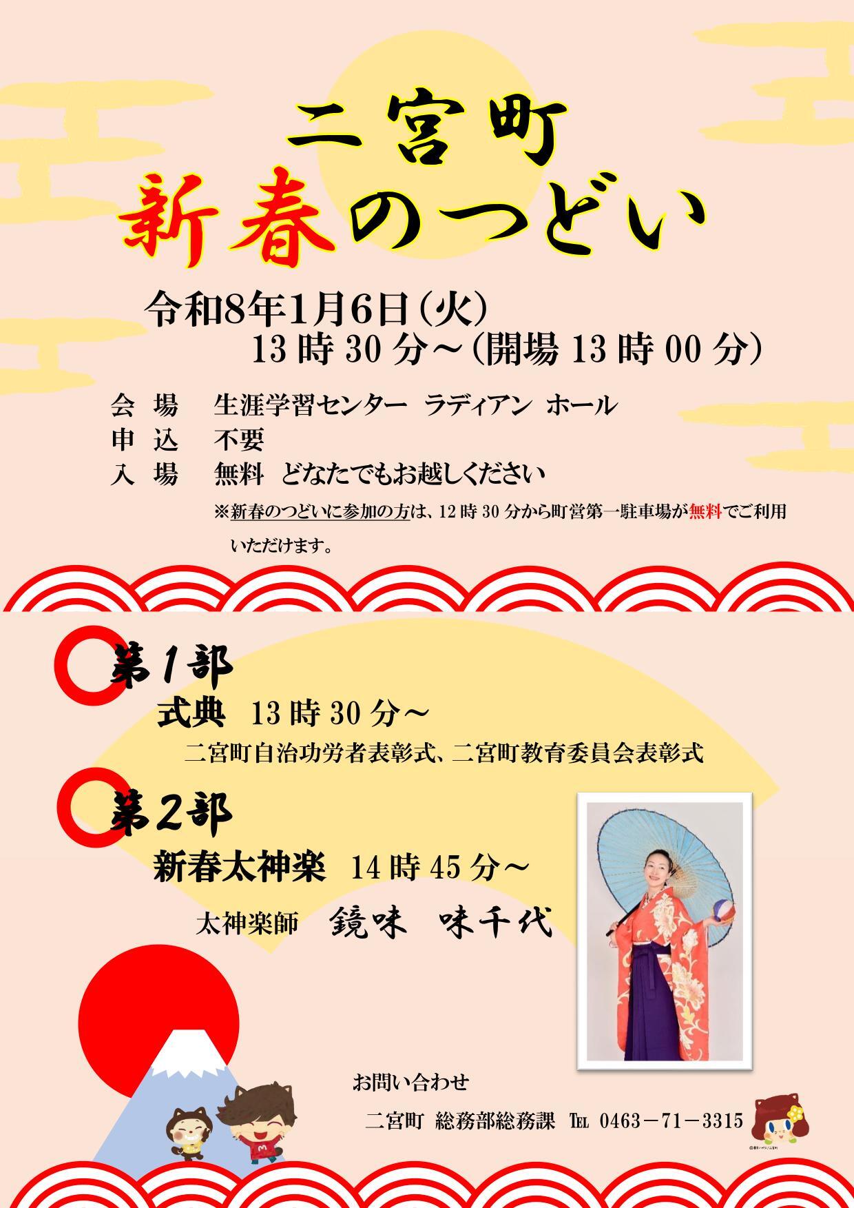 注記:新春のつどいに参加の方は、12時30分から町営第一駐車場が無料でご利用できます。