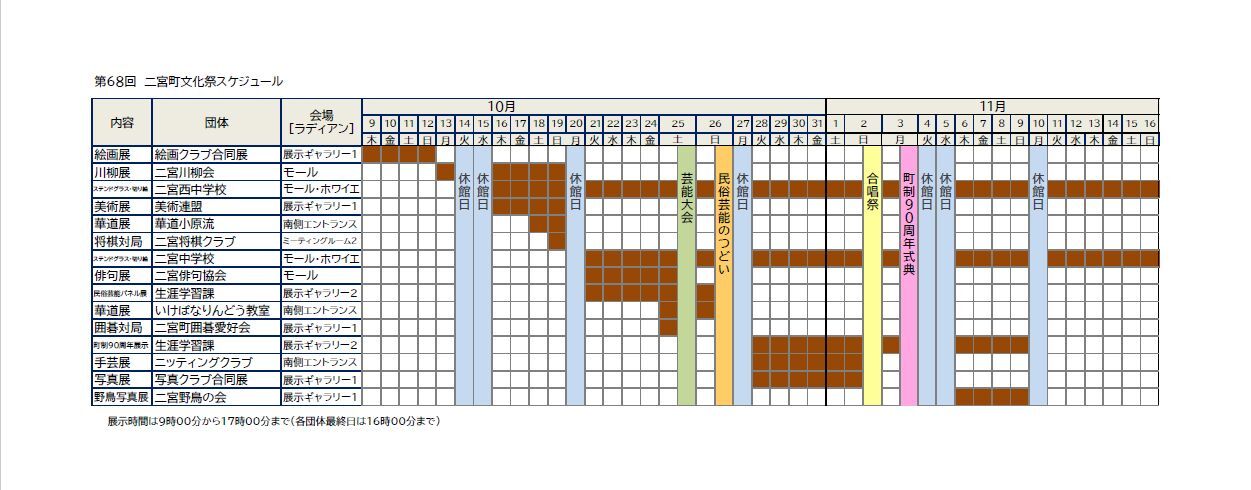 日頃の文化活動を発表する場として、二宮町文化祭を開催します。