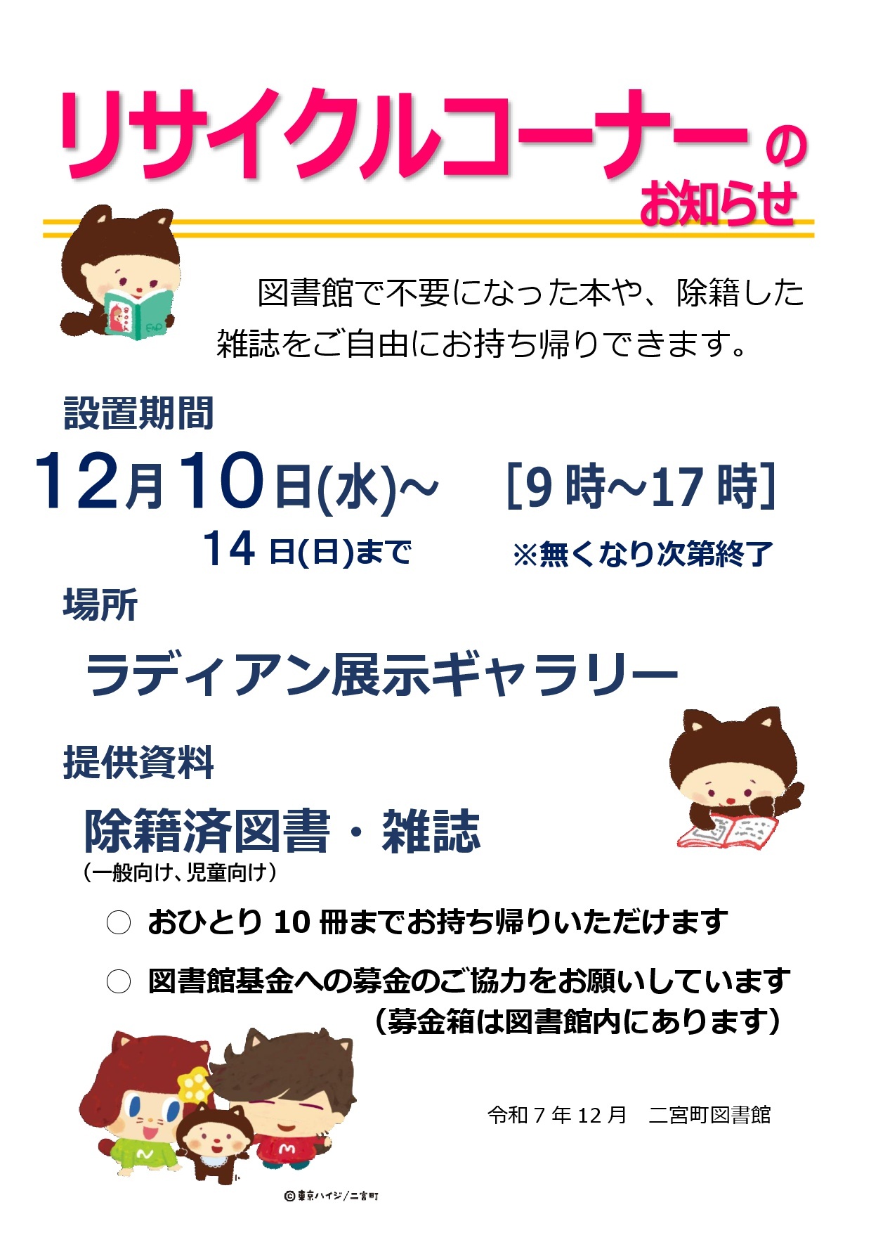 ★図書館基金への募金のご協力をお願いしています。募金箱は図書館内にあります(図書館1F新聞コーナー脇)。
