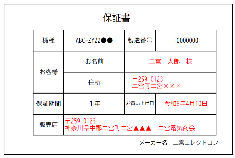 保証書見本