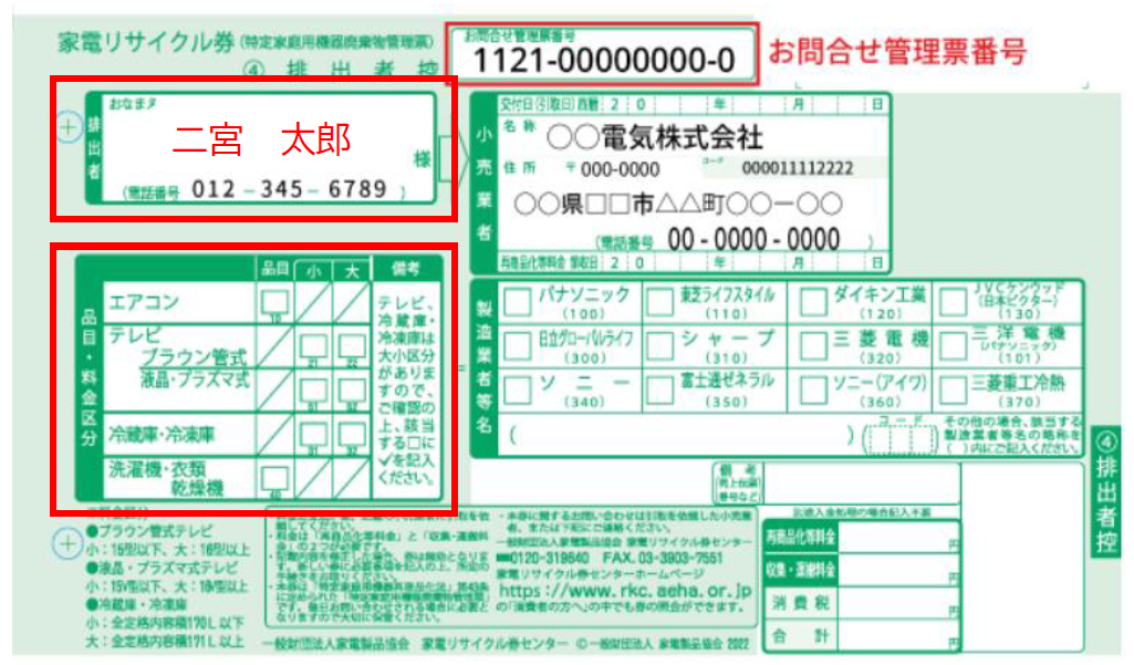 - 家電リサイクル券の写し